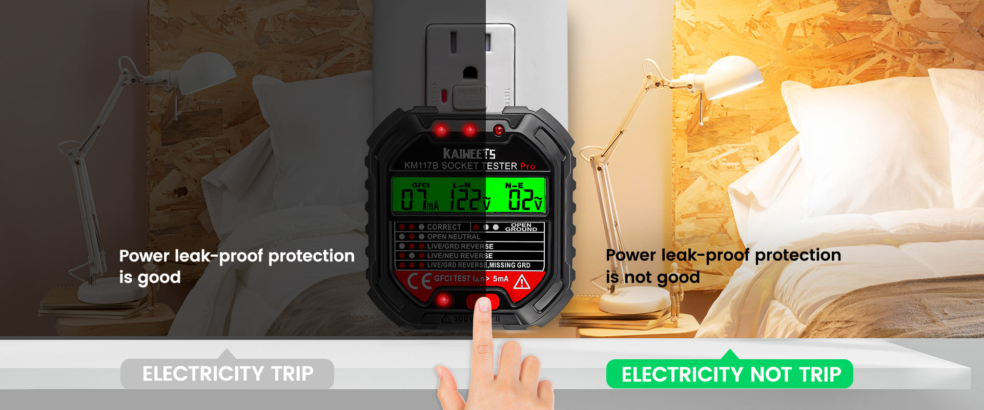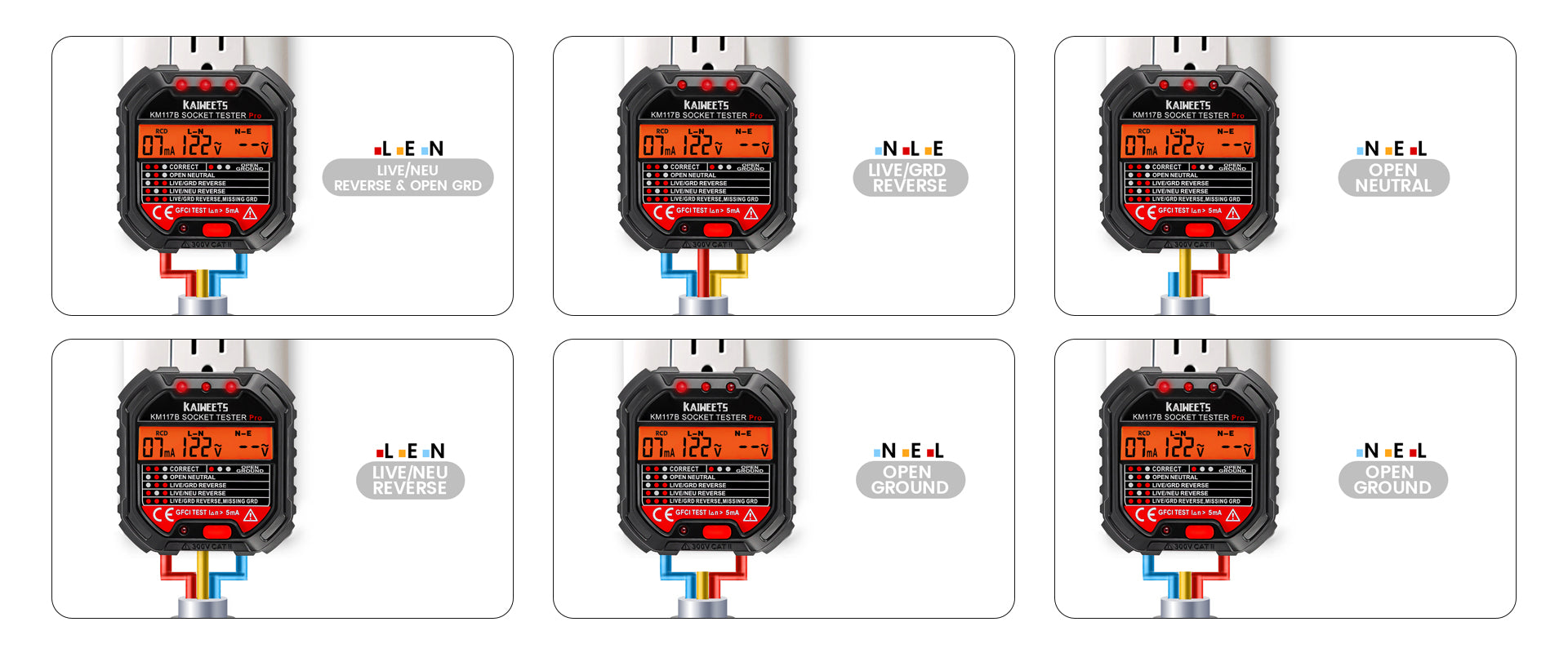 KAIWEETS KM117B Amerikanischer GFCI-Steckdosentester Pro mit LCD-Display