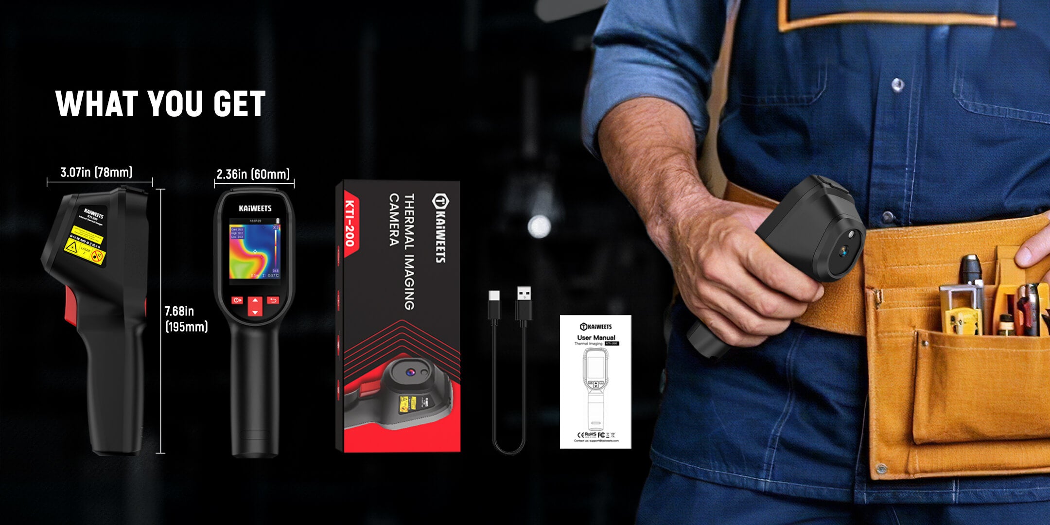 Capture Crisp Thermal Imagery: The KTI-200 thermal camera features 240x240 high IR resolution and 25Hz refresh rate for ultra-smooth thermal imaging, delivering crisp and detailed heat maps on the 2.4" LCD screen, ensuring no detail is missed.