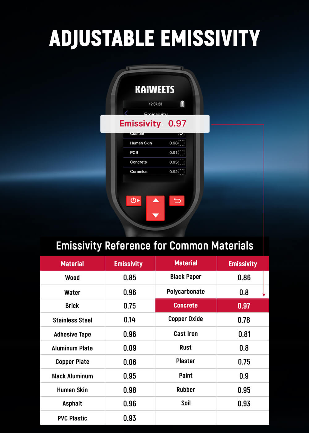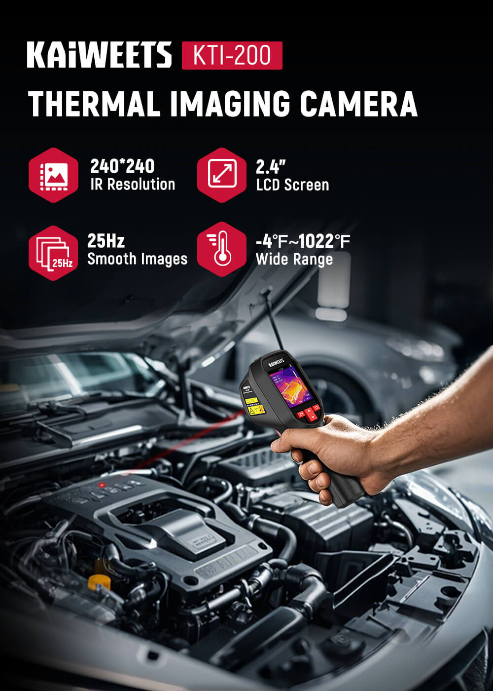 Laser-Assisted Targeting for Precision: The KTI-200 infrared camera measures wide temperatures range from -4°F to 1022°F with a built-in laser pointer for precise object alignment in low-light or cramped spaces. Features a 50° field of view for capturing large areas in detail, and offers ±2% accuracy for precise temperature measurements.