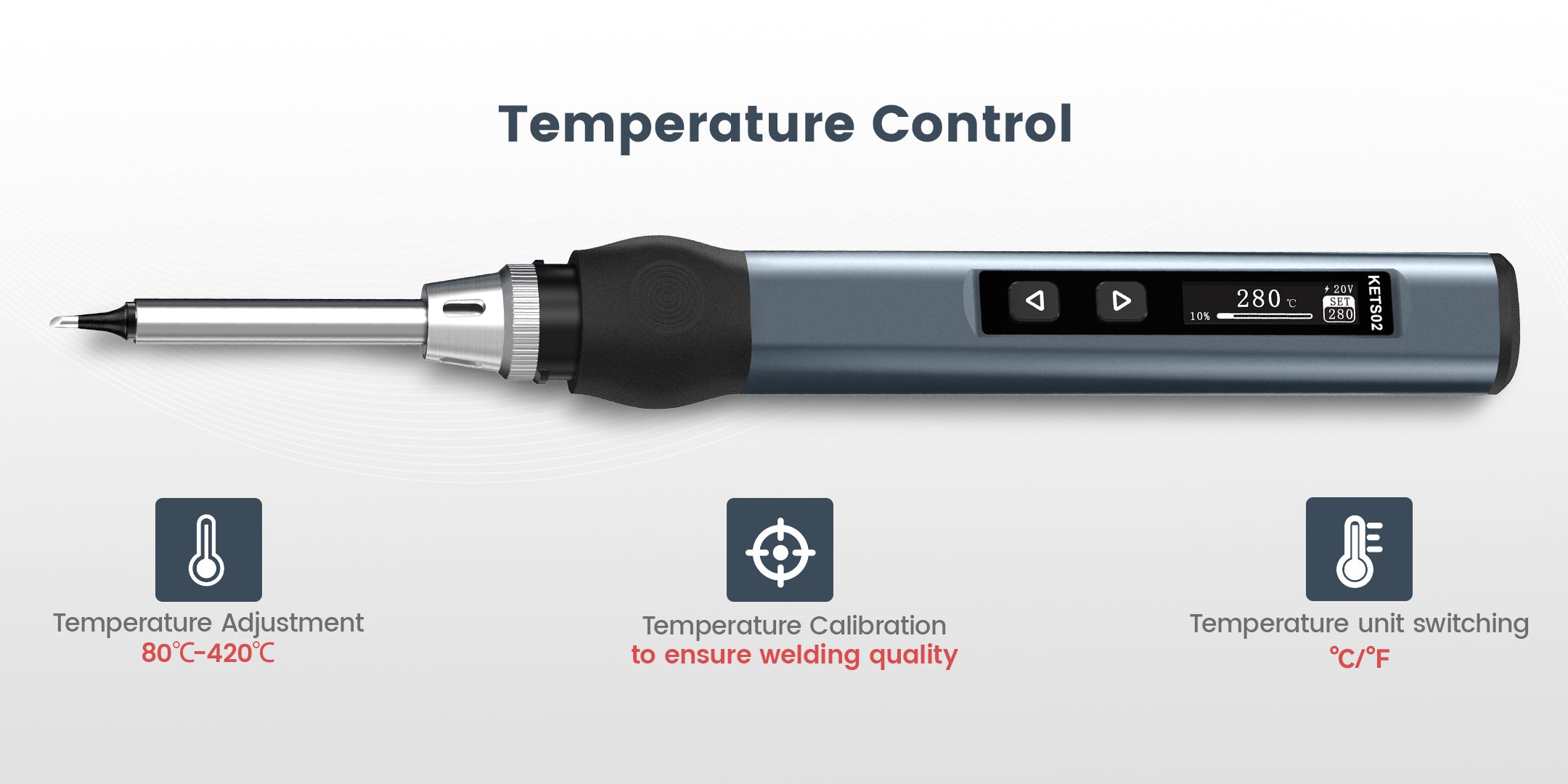 Rapid Heating: This smart soldering iron is equipped with fast heating function, after startup, it can be heated up to the working temperature within a few seconds, 176℉-788℉(80℃-420℃)temperature range can be adjusted accurately according to work needs. This product is suitable for welding and repairing electronic boards, mobile phones, tablets, jewelry and other precision items. (Note: Before starting to use this product, please confirm that the automatic sleep function is turned on.)