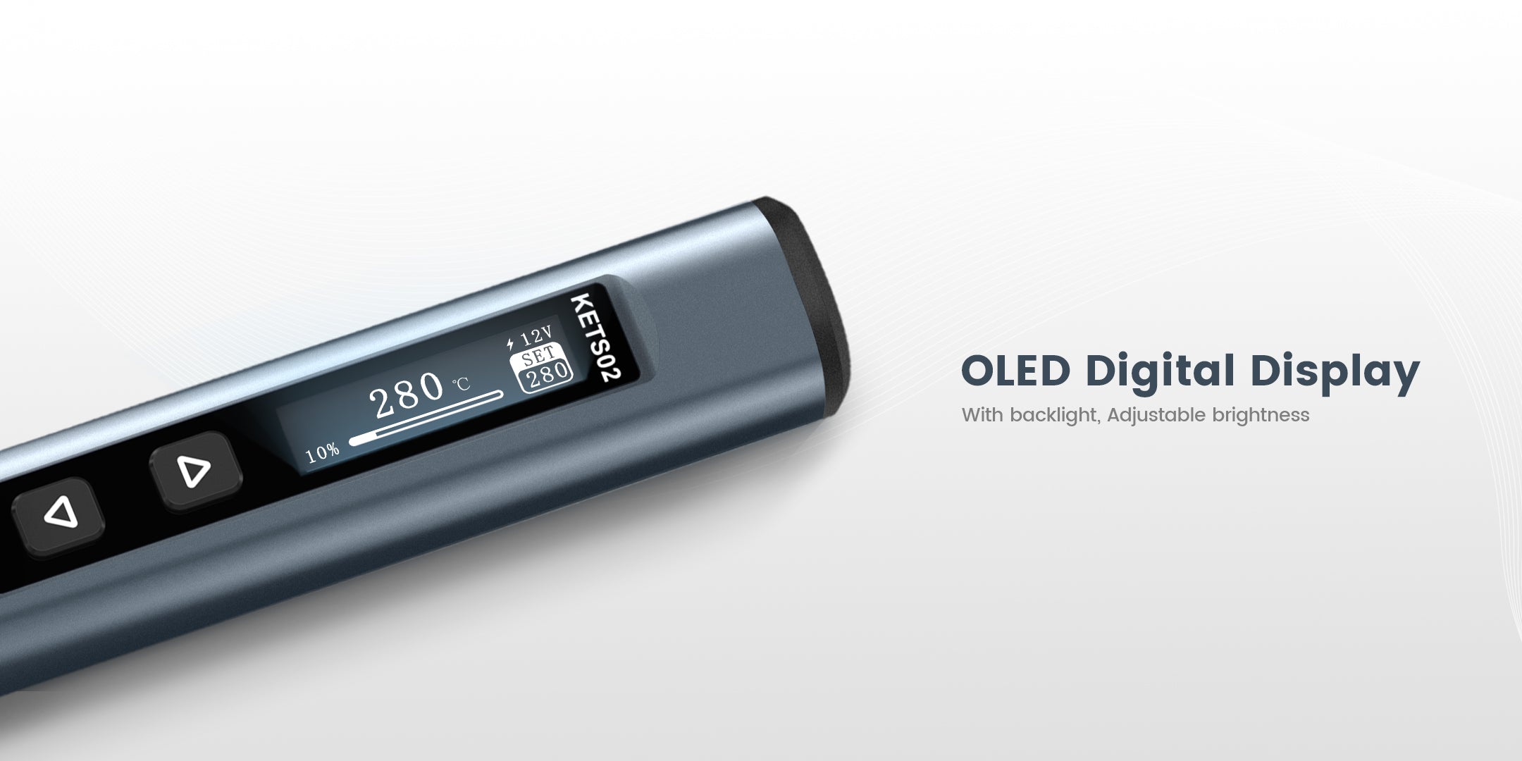 OLED Display Screen: This soldering iron is equipped with an OLED display screen, which can adjust the brightness according to needs. The working status, temperature settings, and various functional operations of the soldering iron will be clearly displayed on this display screen, making it convenient for you to read data and control the soldering iron more finely.