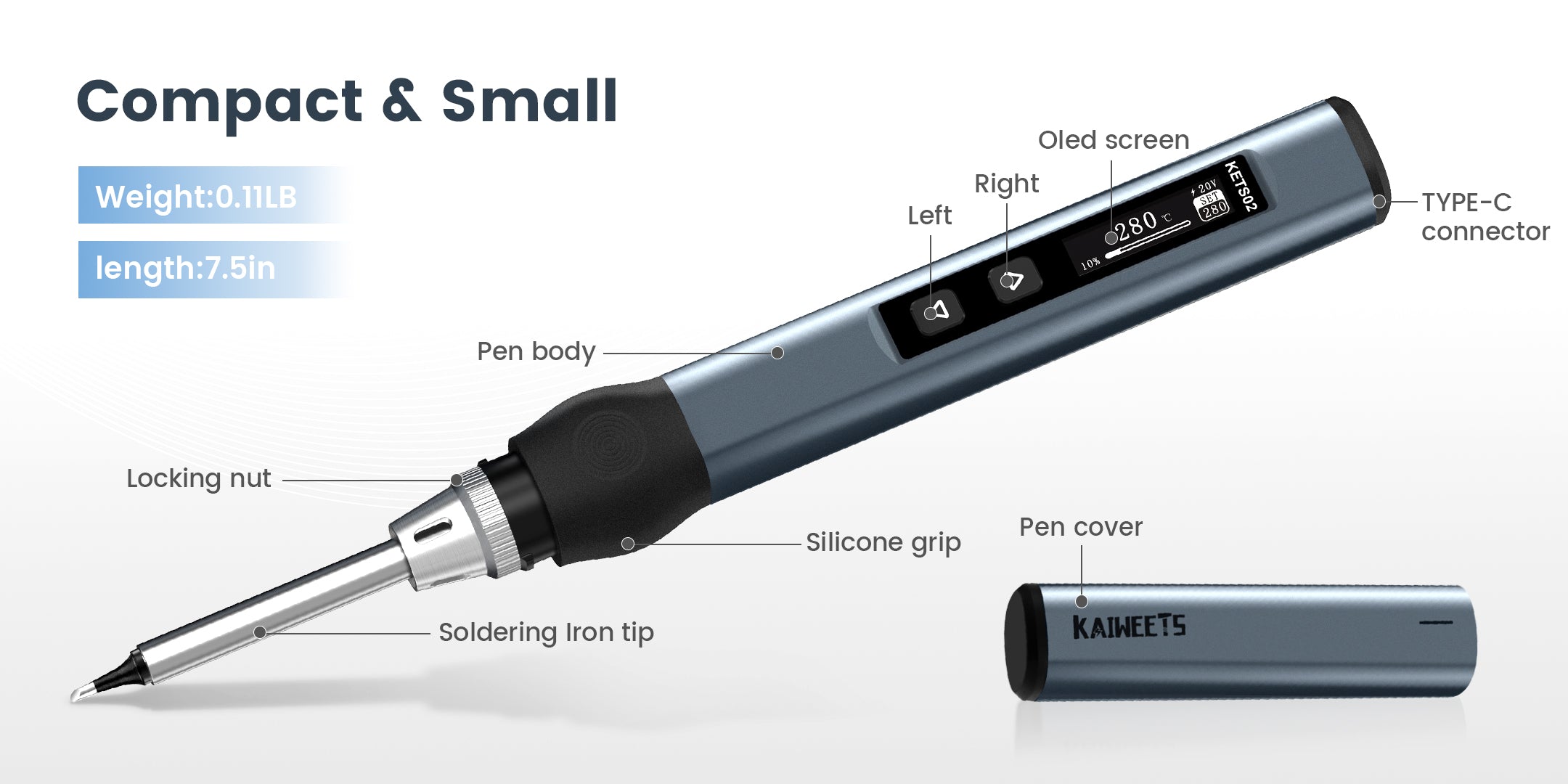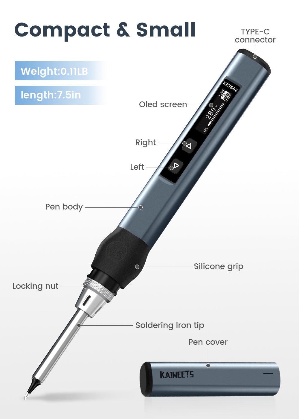 OLED Display Screen: This soldering iron is equipped with an OLED display screen, which can adjust the brightness according to needs. The working status, temperature settings, and various functional operations of the soldering iron will be clearly displayed on this display screen, making it convenient for you to read data and control the soldering iron more finely.