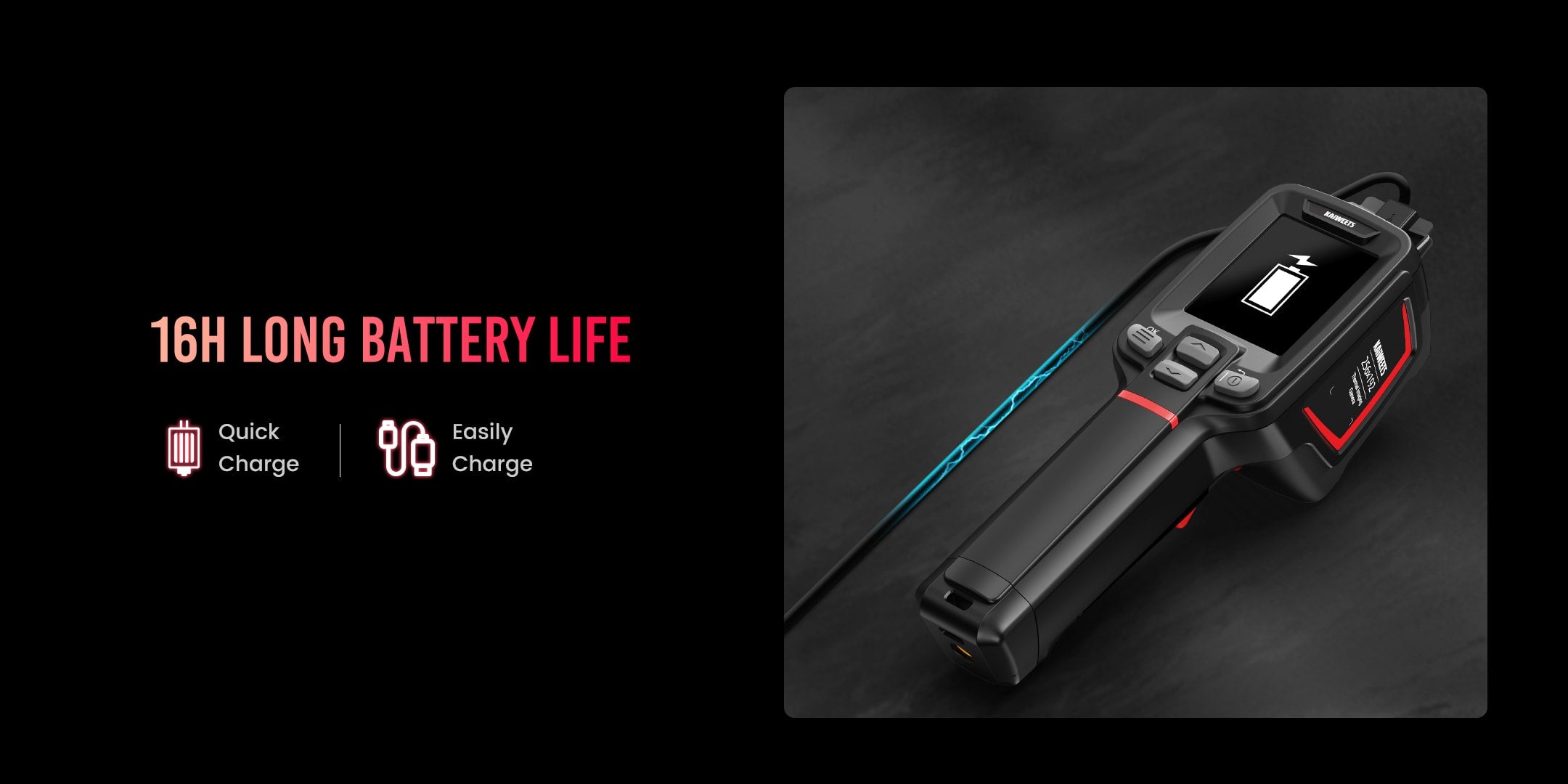 ④ Lighting lamp to help work in a dark environment. built-in 4850mAh rechargeable Li-ion battery can support up to 16 hours of continuous work, making the duration of the market unrivaled.