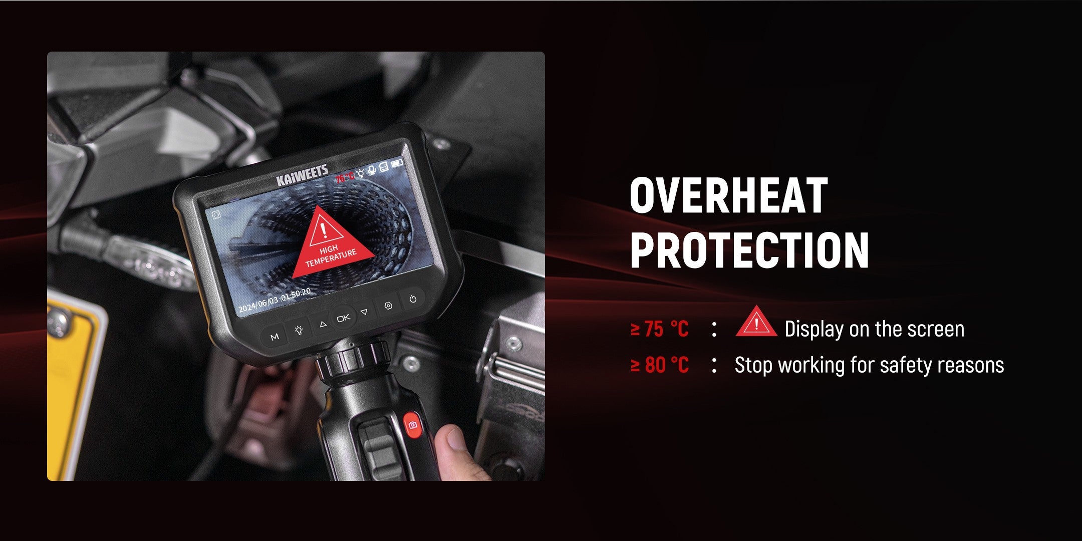 Two-Way 210° Articulating Borescope: Effortlessly navigate tight spaces with KAIWEETS advanced articulating borescope, featuring a Two-Way 210° turning capability. This allows you to reach and inspect difficult areas with precision. Whether you’re an automotive mechanic or performing intricate inspections, this borescope ensures you can see exactly what you need, even in confined spaces.