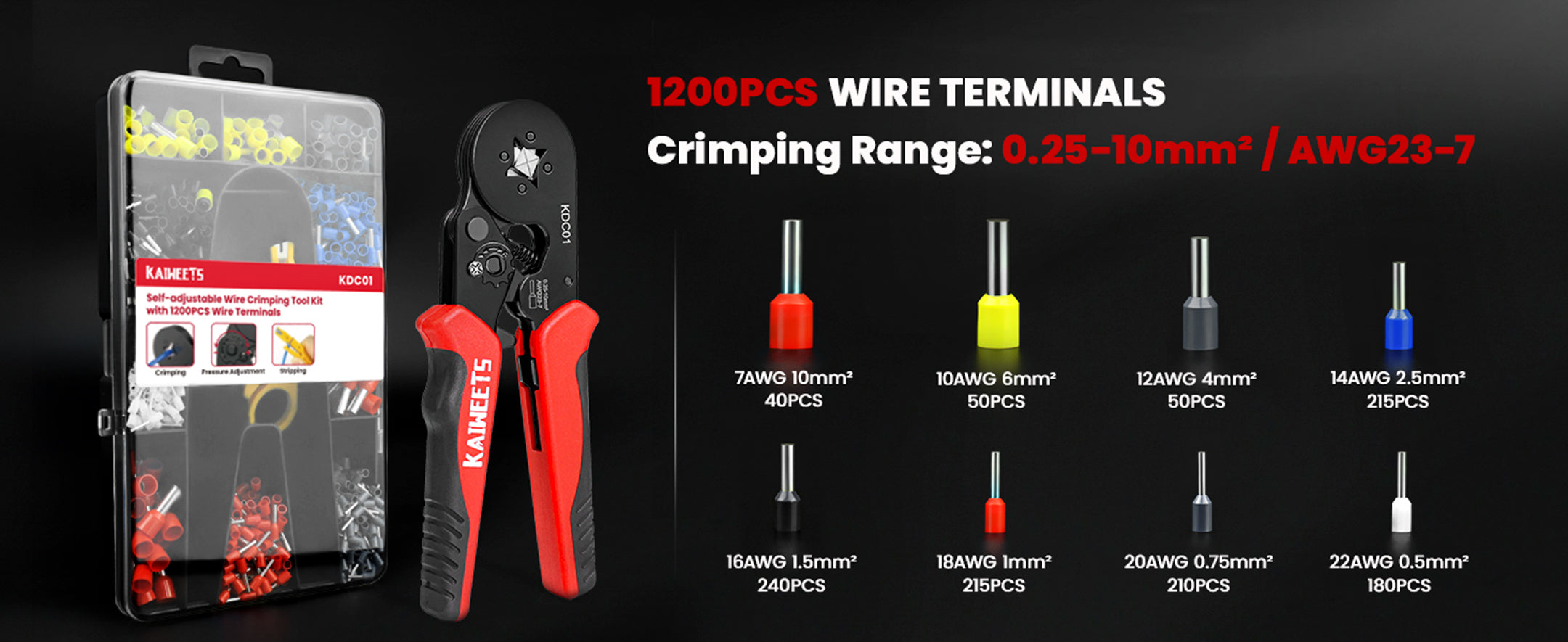 KAIWEETS KDC01 ensemble d'outils de sertissage, outil de sertissage de fil auto-ajustable