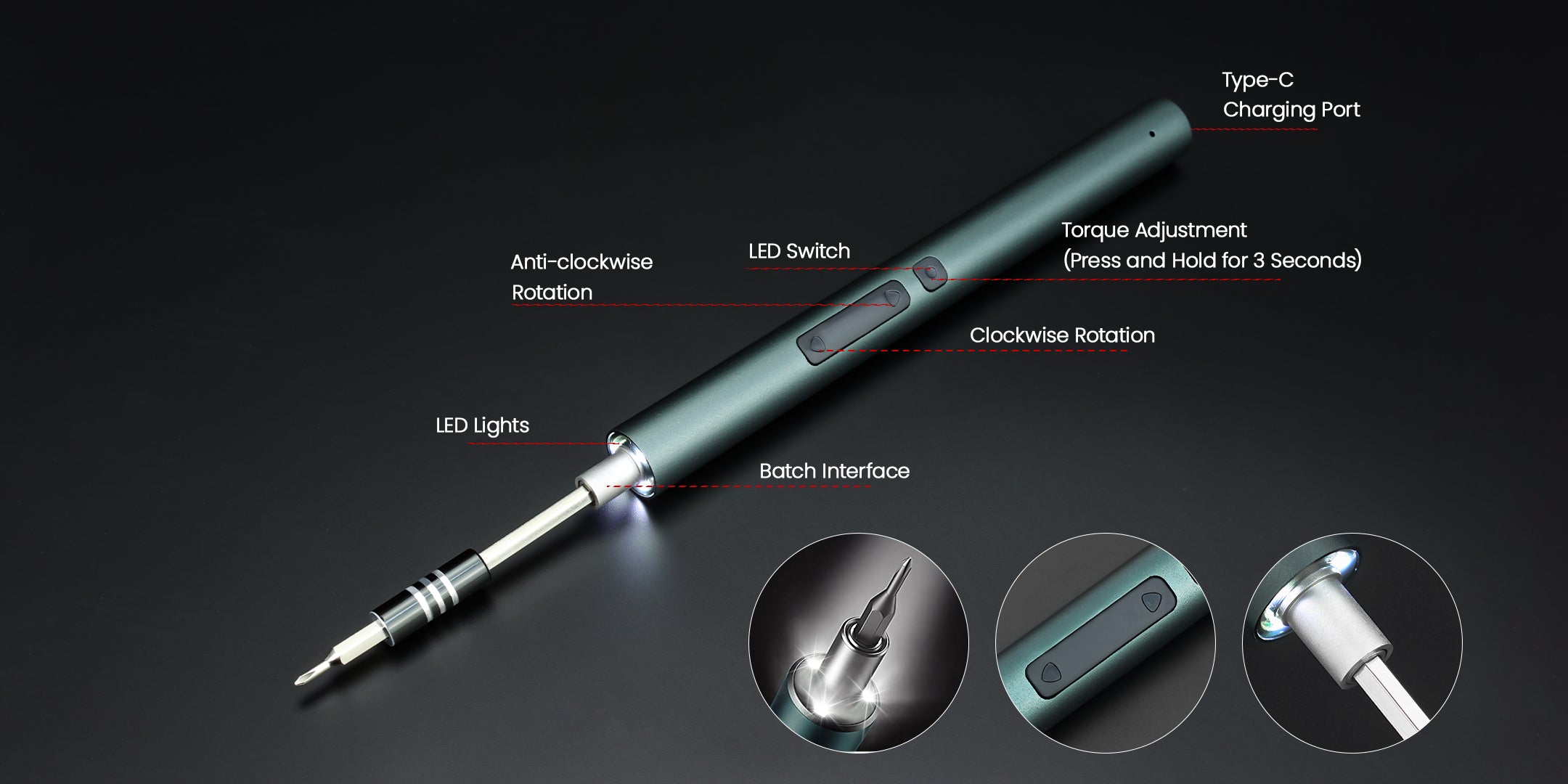 Our electric cordless screwdrivers has a speed of up to 200rpm (no-load speed) and adjustable torque (0.15-0.35N.m) for different needs. Combining the forward and reverse buttons of the electric screwdriver allows you to quickly tighten or loosen different types of screws.