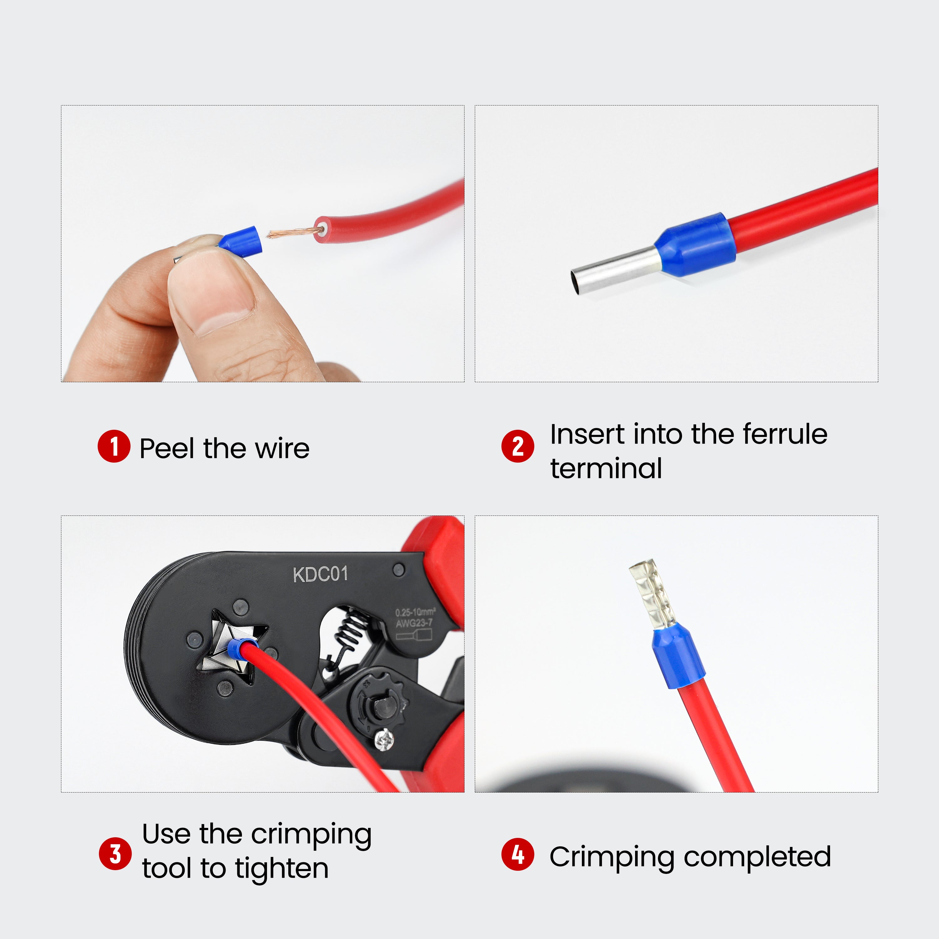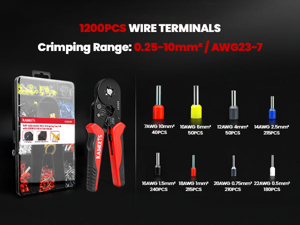 Perfect Crimping Tool: The crimping tools have a high-efficiency ratcheting mechanism and a professional crimping die. With adjustable crimping force and quick release lever. can be used to crimp 0.34-10mm²(22-8 AWG), insulated and non-insulated ferrules.
